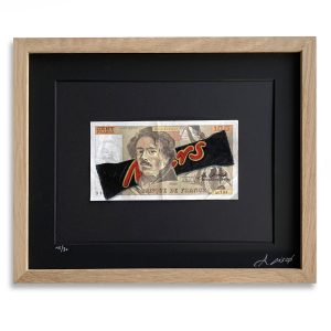 Sur le recto, on voyait Delacroix de trois-quarts, regard déterminé et un peu mélancolique. À ses côtés, un détail de La Liberté guidant le peuple renforçait l’idée de mouvement et d’inspiration artistique.
