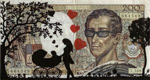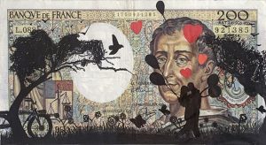 Vous serez enchanté par l’harmonie entre l’iconique billet de 200 francs et la représentation artistique.
