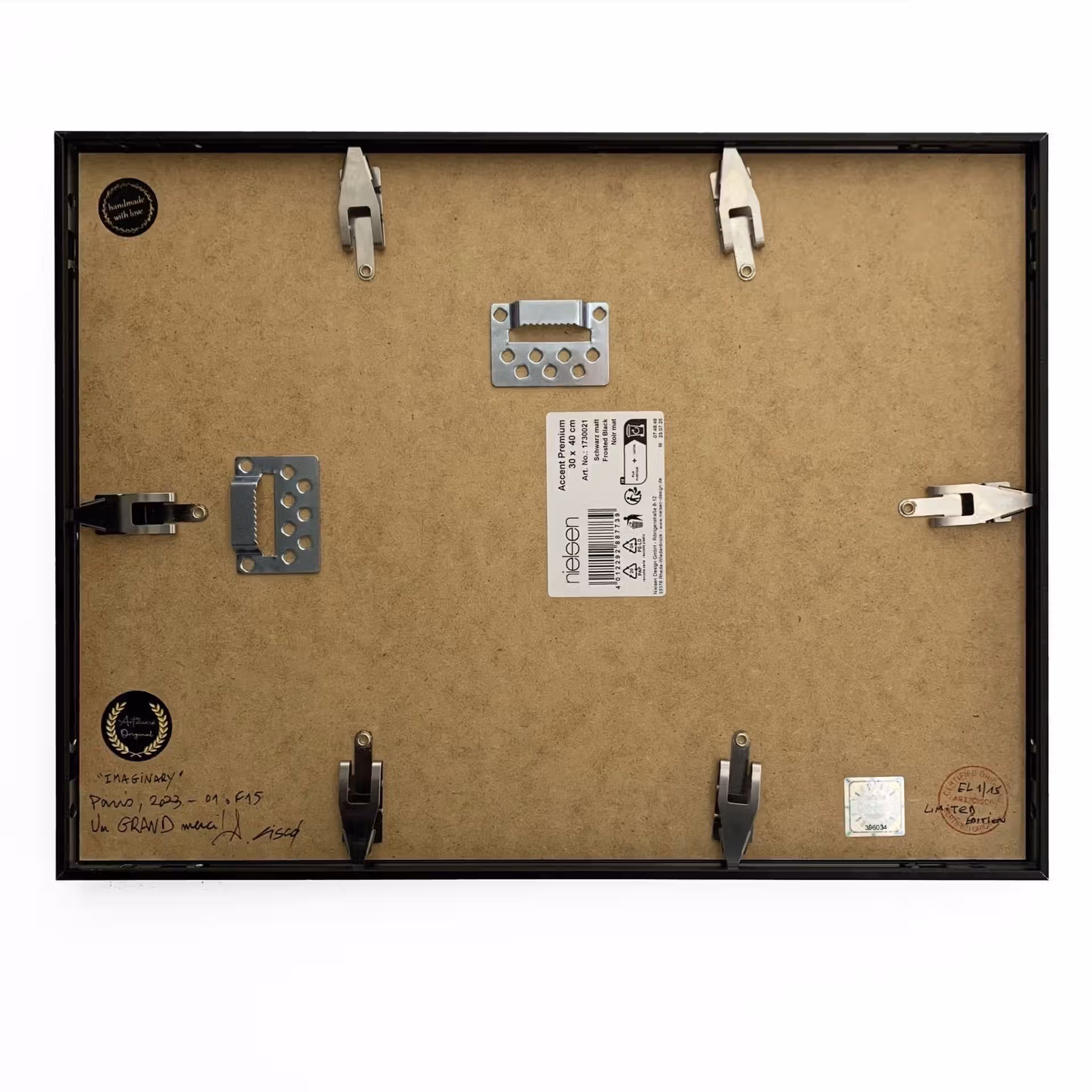 • Encadrement noir mat 31 x 41cm avec vitre en verre.