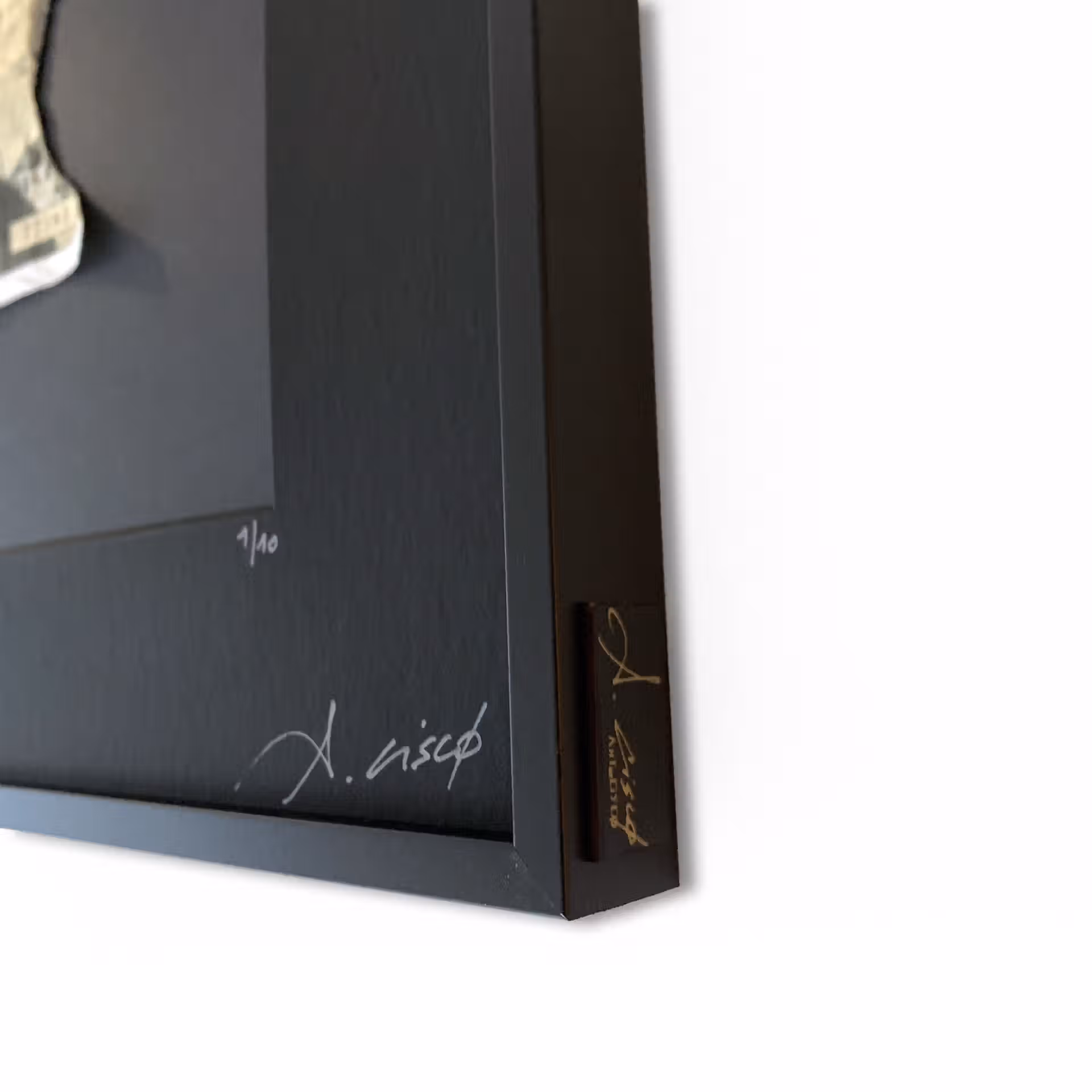 • Signature gravée sur plaque et fixée sur le côté du cadre